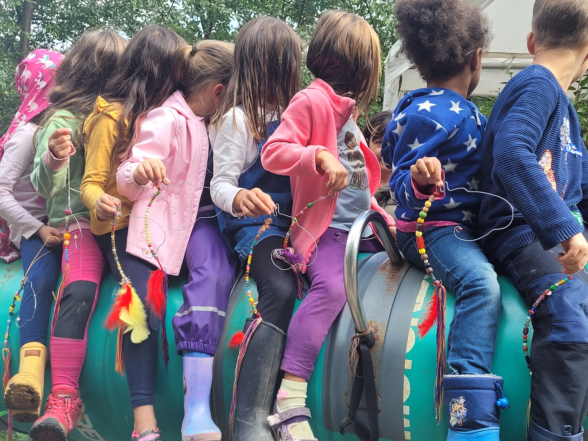 Für den Pferdeanhänger verwenden wir Perlen, Band und schönen Federn.