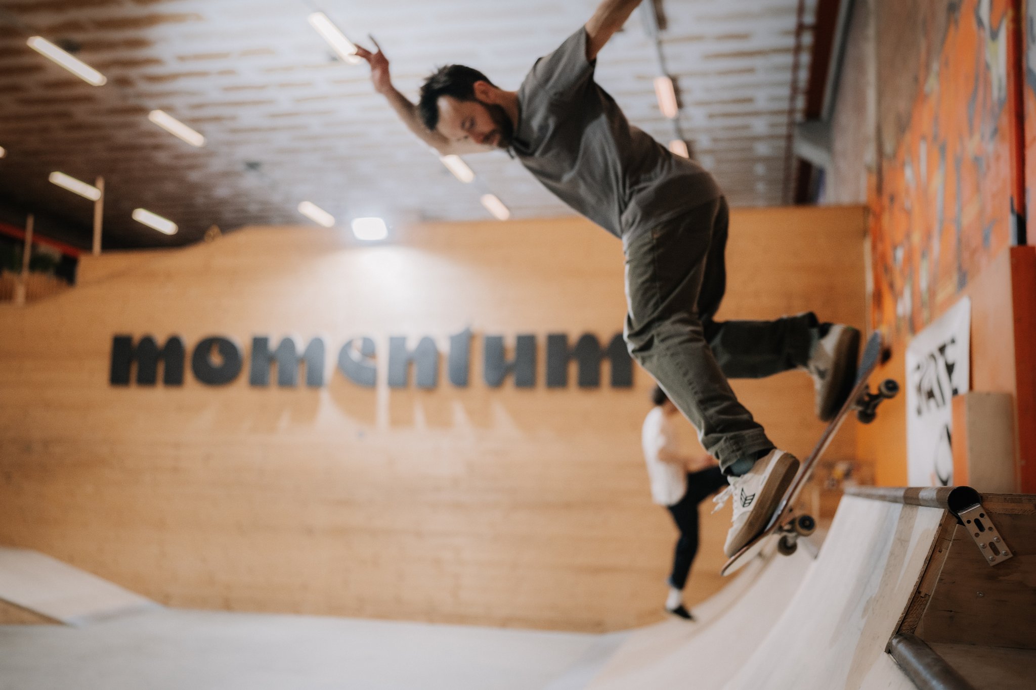 Im Kurs erlernst du die grundlegende Fahrtechnik des Skateboarden und probierst erste Tricks aus.